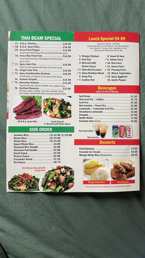 Welcome to Thai Beam Cuisine, a hidden gem located at 4854 Huntington Dr S in Los Angeles, where authentic Thai flavors meet delightful ambiance. This restaurant truly shines with its diverse menu, featuring exquisite options designed to tantalize your taste buds.